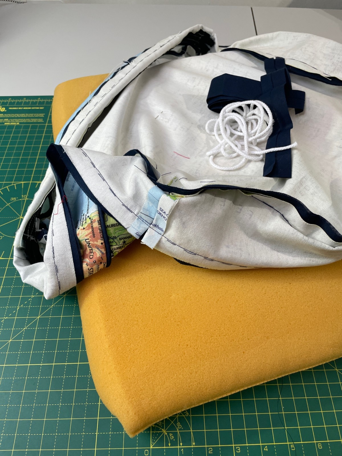 Bij de kringloopwinkel kocht ik een tuinkussen en ik maakte deze op maat. Nu ben ik bezig met de hoes van een mooie lap stof. Best een klus, maar wat wordt het mooi!