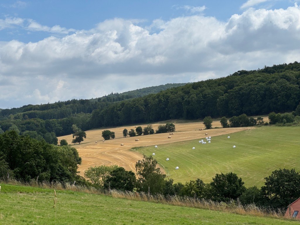 In de zomervakantie maakte ik van papier een collage van ons prachtige uitzicht. Eenmaal thuis kon ik het niet laten om het ook eens met textiel te proberen.