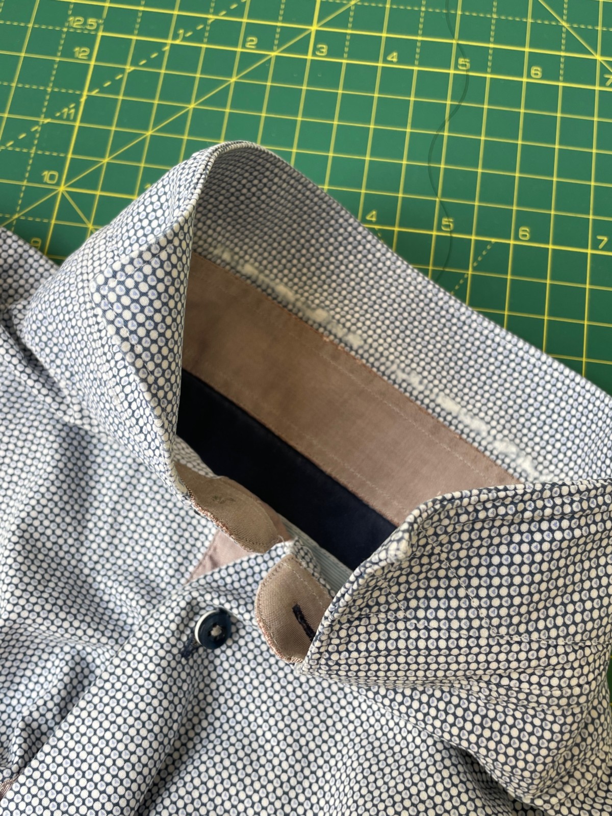 Ai, zo jammer dit! Een versleten kraag en versleten manchetten, maar verder is dit overhemd nog helemaal goed. Daar heb ik iets op gevonden, dat heb je vast al wel vaker voorbij zien komen: